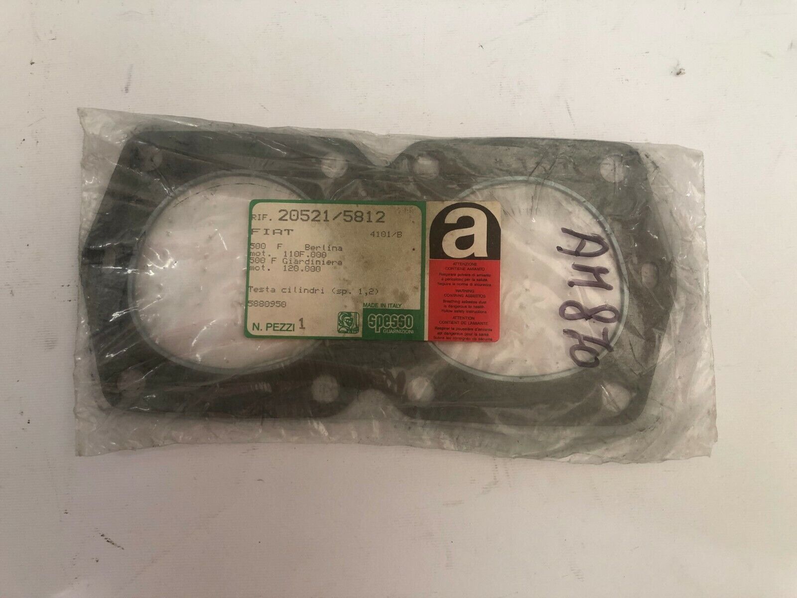 20521/5812 GUARNIZIONE TESTATA 1,2MM FIAT 500 Sedan 0.5 13KW 18CV 1967